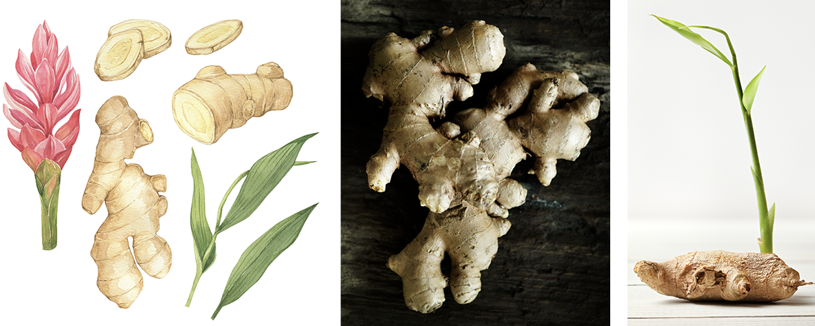 Ginger has a popular usage in cooking to enhance spicy flavour. It warms the spleen, promotes circulation and aids digestion when used in tea.